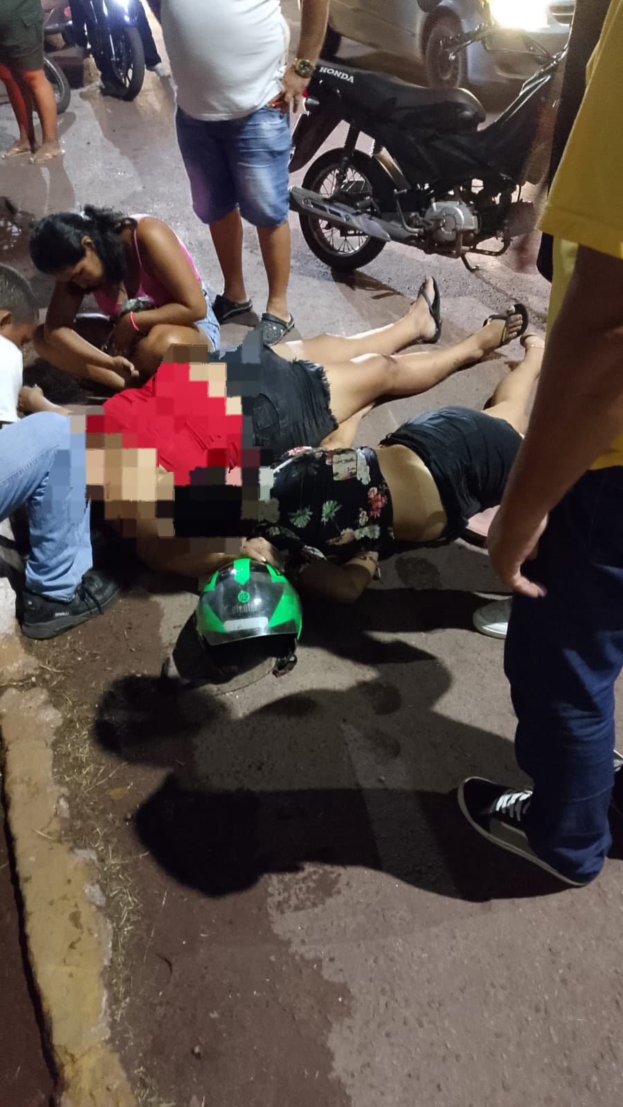 Duas mulheres ficaram feridas após uma queda de motocicleta na noite de ontem, por volta das 23h30, no cruzamento das ruas Frei Mariano com Porto Carreiro, no Centro de Corumbá.