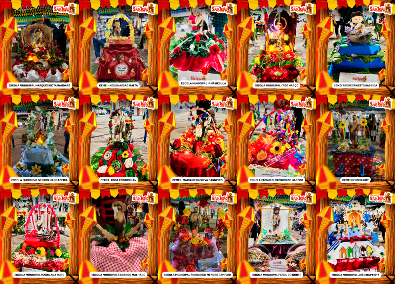 As escolas prepararam seus andores com materiais diversos, utilizando elementos simbólicos da festa junina e da religiosidade local. O resultado são peças que impressionam pela beleza, originalidade e pelo envolvimento dos estudantes em todas as etapas de criação.
