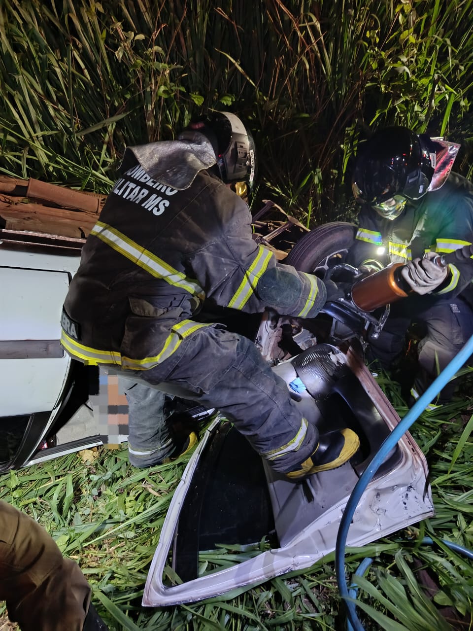 O Corpo de Bombeiros Militar, por meio do 3º Grupamento de Bombeiros Militar (3º GBM), foi acionado e, ao chegar ao local, encontrou um veículo branco que havia saído da pista e capotado em meio à vegetação às margens da rodovia.